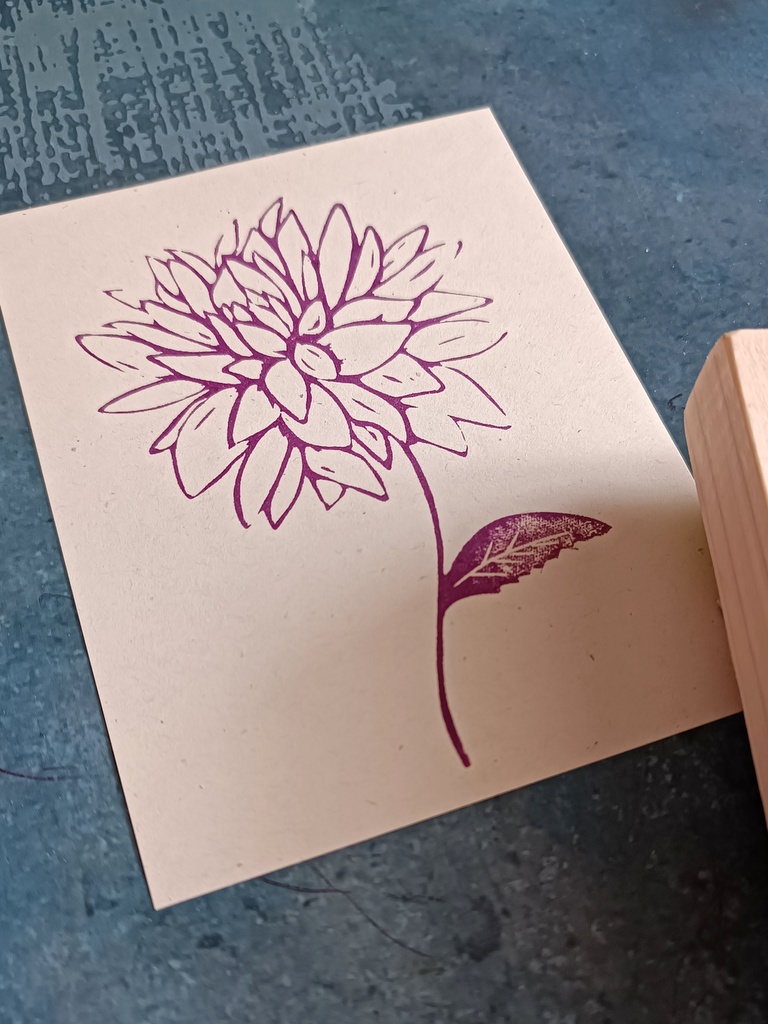 Zapewnij swoim projektom wyjątkowy charakter z moim niezwykłym stemplem ręcznie robionym z wzorem dalii! Każde odbicie tego pięknego wzoru przynosi niepowtarzalny urok i elegancję, idealną do personalizacji kartek, zaproszeń, opakowań prezentów i wiele więcej. Wykonany z najwyższej jakości materiałów, mój stempel gwarantuje czyste, precyzyjne odbicia, które zaskoczą i oczarują Twoich klientów.