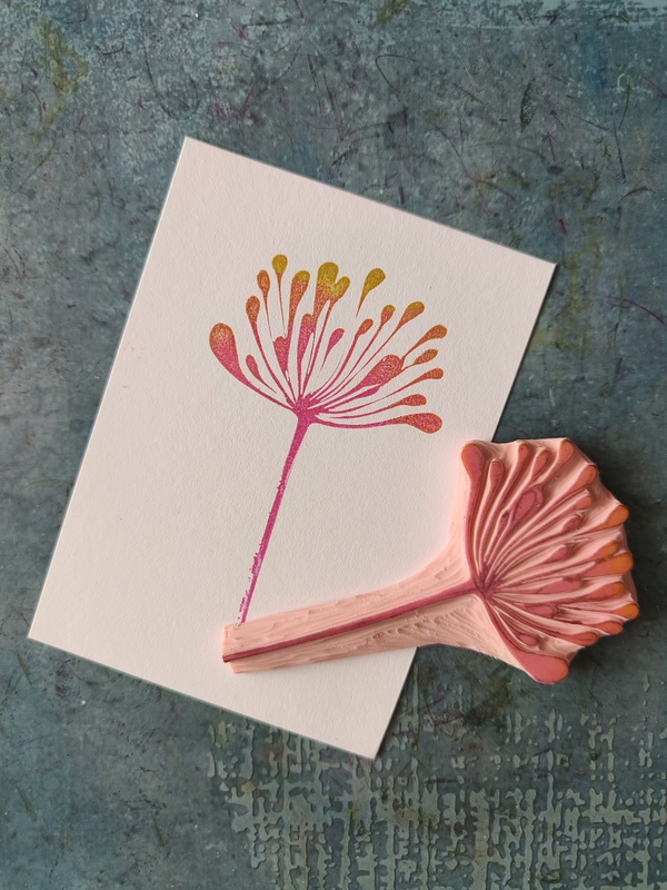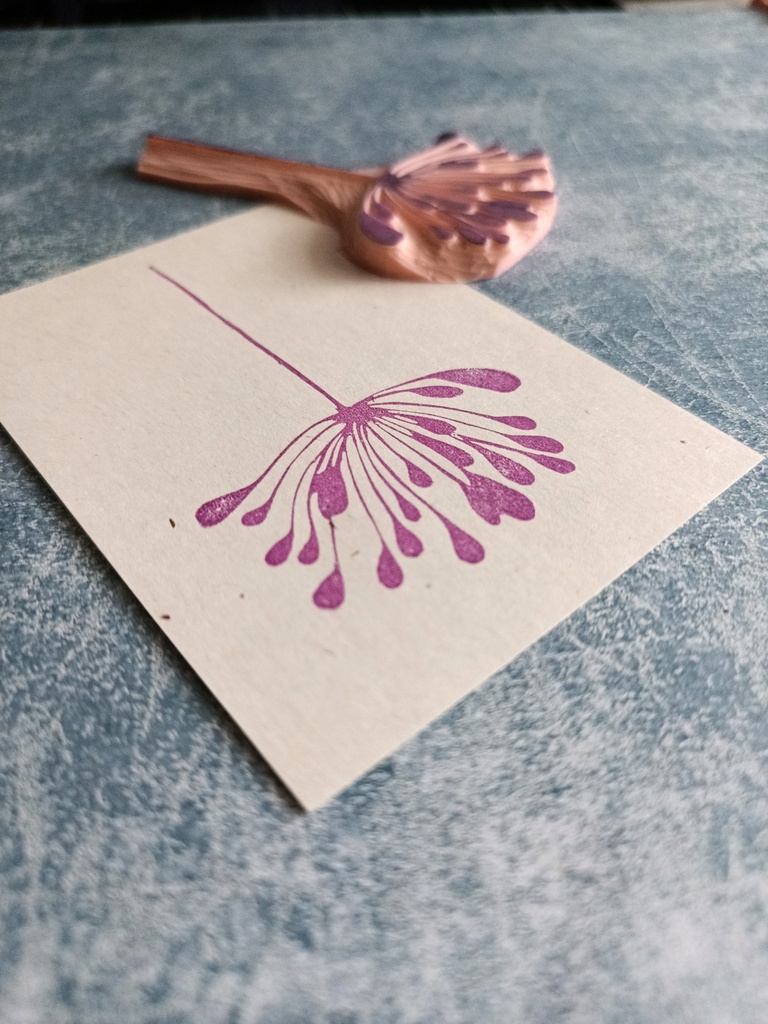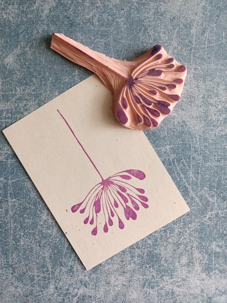 Ta ręcznie rzeźbiona pieczątka z motywem delikatnego kwiatu to idealny wybór dla osób, które kochają papier, naturę i twórcze projekty. Jej lekka, organiczna forma pięknie prezentuje się na kartkach okolicznościowych, w bullet journalach, scrapbookach oraz na opakowaniach handmade.
