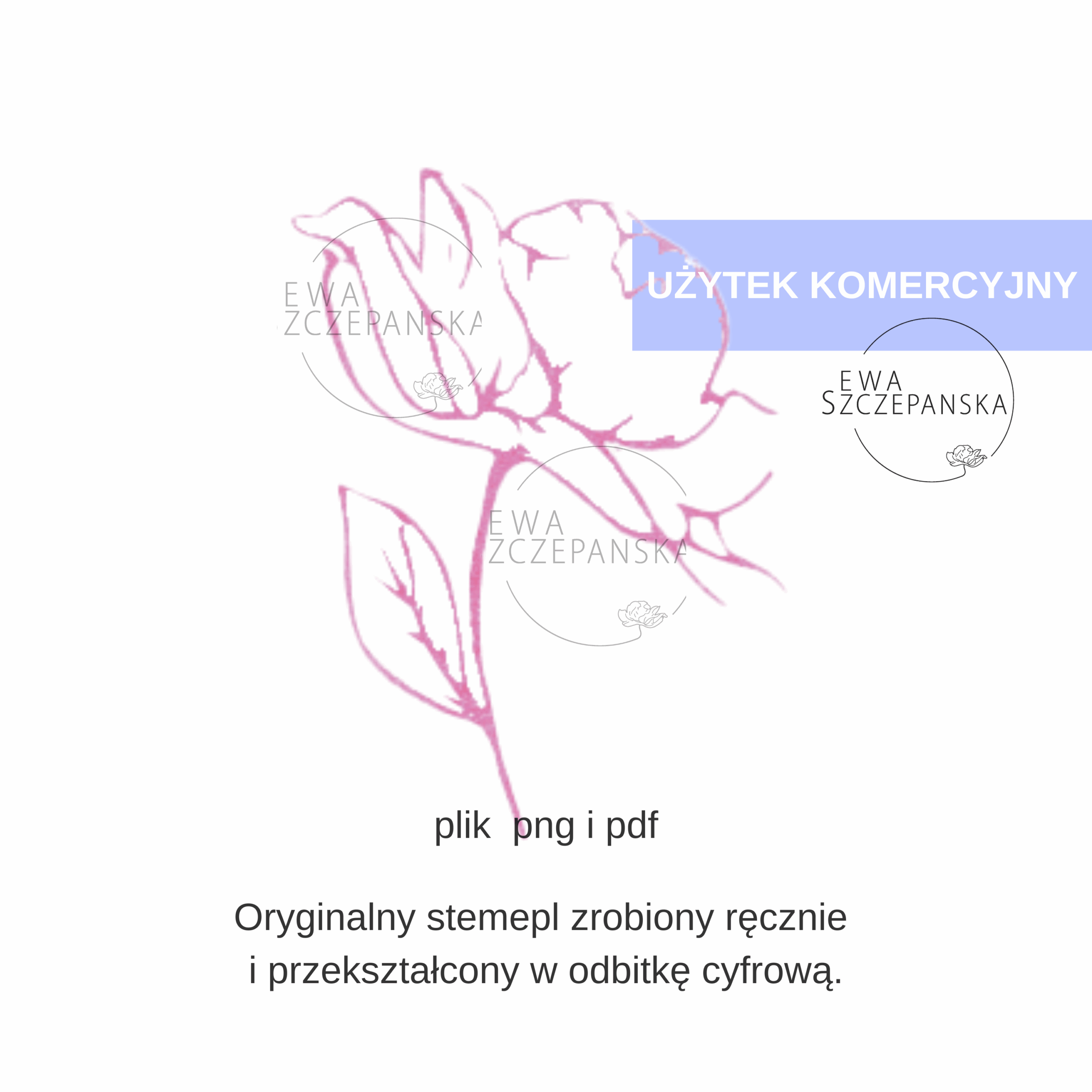 Wszystkie moje projekty są autorskie i tworzone z pasją. Każdy stempel rzeźbię ręcznie w gumie o grubości 0,6–0,8 cm, dbając o każdy detal. Następnie wykonuję odbitkę i digitalizuję ją, abyś mógł/mogła korzystać z cyfrowej wersji, która zachowuje teksturę i charakter oryginalnego rękodzieła.